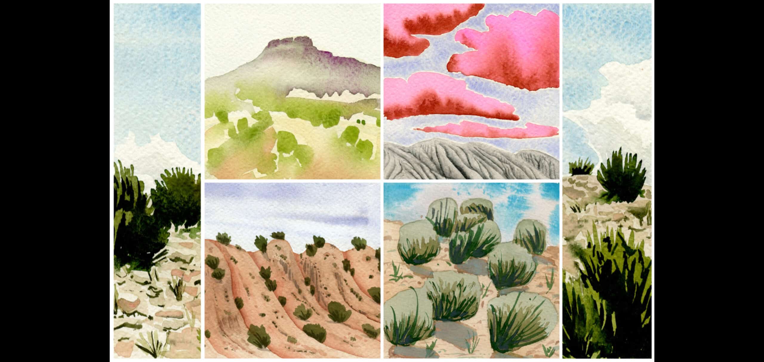 Join me for a three-day workshop to learn the fundamentals of painting the high desert landscape in watercolor. Inspired by the same New Mexico vistas that moved Georgia O’Keeffe, we’ll explore simple techniques for capturing colorful skies, distant horizons, and desert flora. Through guided instruction, you’ll develop your own unique vision of this enchanted landscape. By the end of the weekend, you’ll have completed several small paintings, gained a wealth of practical tips and techniques, and discovered the confidence to continue your watercolor journey.