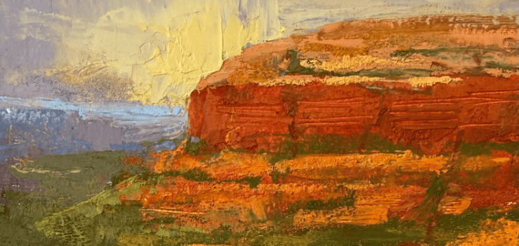 For those new to the medium, Cold Wax is a dense, paste-like medium that mixes with oil paints to increase body, speed up drying time, and create a lush, matte finish. Unlike encaustic, it requires no heat. This unique consistency allows us to explore the surrounding high desert scenery in a new way, using tools to scratch back, reveal, and describe your emotional experience of the landscape.