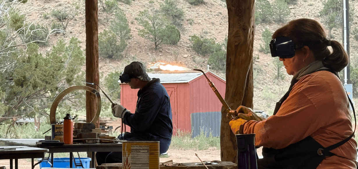 Join our “welding-in-the-round” community and experience the thrill of metal art welding surrounded by the incredible beauty of Ghost Ranch. Learn the basics of oxygen acetylene welding and brazing, MIG & stick welding, plasma cutting and other metal cutting and forming techniques to make functional pieces and metal sculpture. Create your pieces using scrap metal from ferrous (iron) and non-ferrous materials that are in our ‘treasure’ pile. All materials are provided, but you will want to bring your own snug fitting leather wrist length gloves for comfort and dexterity. Please read the welcome letter for more class details and daily studio schedule info. The Ghost Ranch legacy of ‘Wretched Welders’ is honored to be offered for over 45 years, come be a part of the family! Open to all levels of experience age 15 plus.