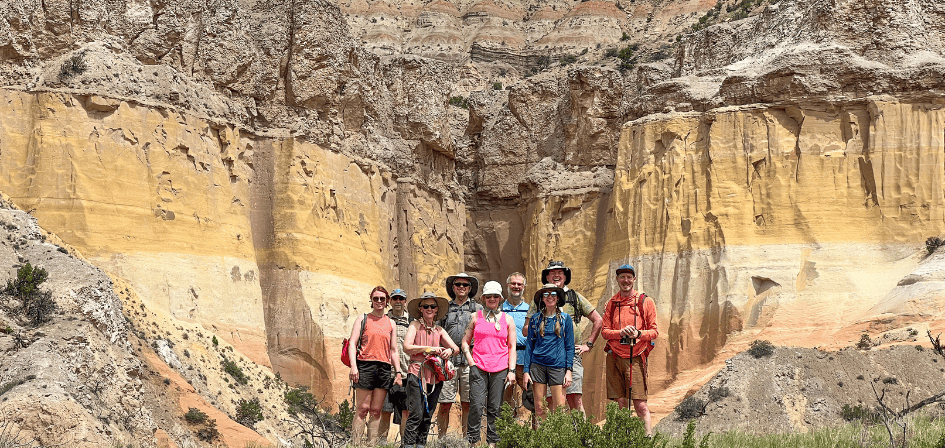 The hiking portion of this program will have strong focuses on geology and history, and covering beautiful desert and mountainous terrain. All hikes will be (at minimum) starting at an elevation of about 6,000 feet or more. Most hikes will range from 3-8 miles, but all will incorporate some challenging elements (loose rock, steep slopes, rock ledges, use of hands/feet). Adjustments will happily be made if people feel uncomfortable, or need a break from longer, harder days to rest the legs. Yoga will be periodically offered throughout the week, will not be advanced, and the last session will feature Jesse playing live acoustic guitar! Our desire is to hike hard to see amazing rock formations, expansive views, quiet places, restore our bodies, all while being receptive to the stories of our fellow hikers and exploring how the desert’s magic can inspire change in us all. We hope you consider this class during an exceptional time of year in Abiquiu, NM, and stay open to the wonder of it all!